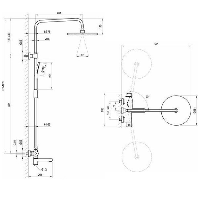 - конструкция верхнего душа: круглый ABS-пластик, диаметр 25 см;