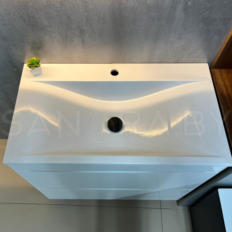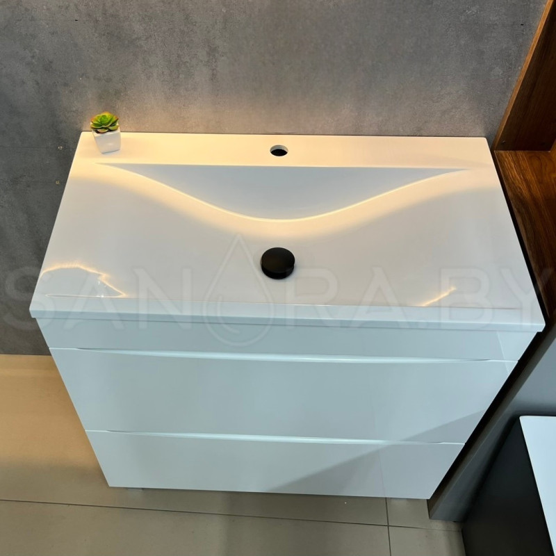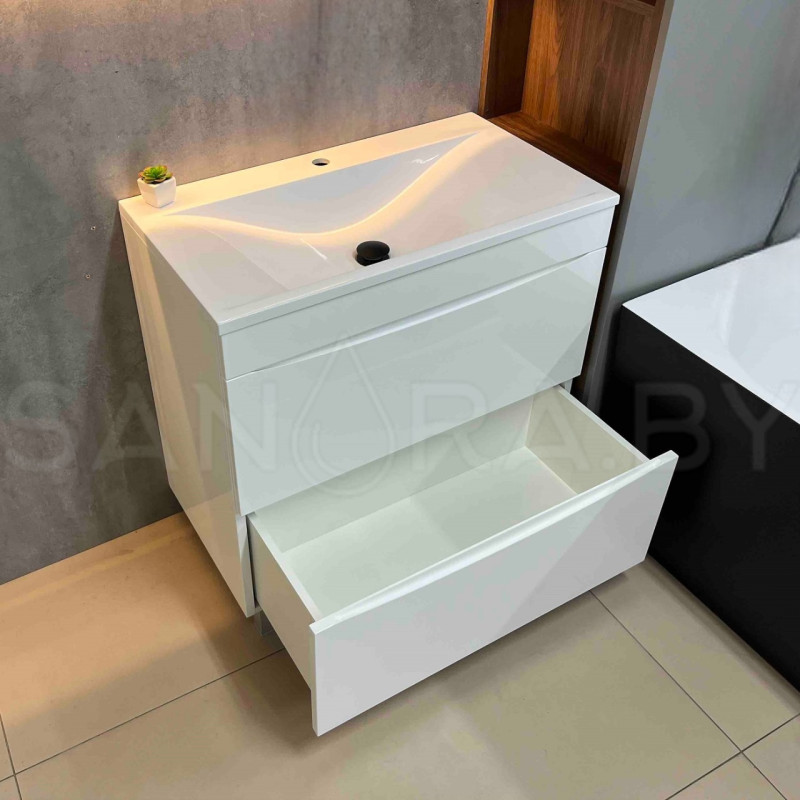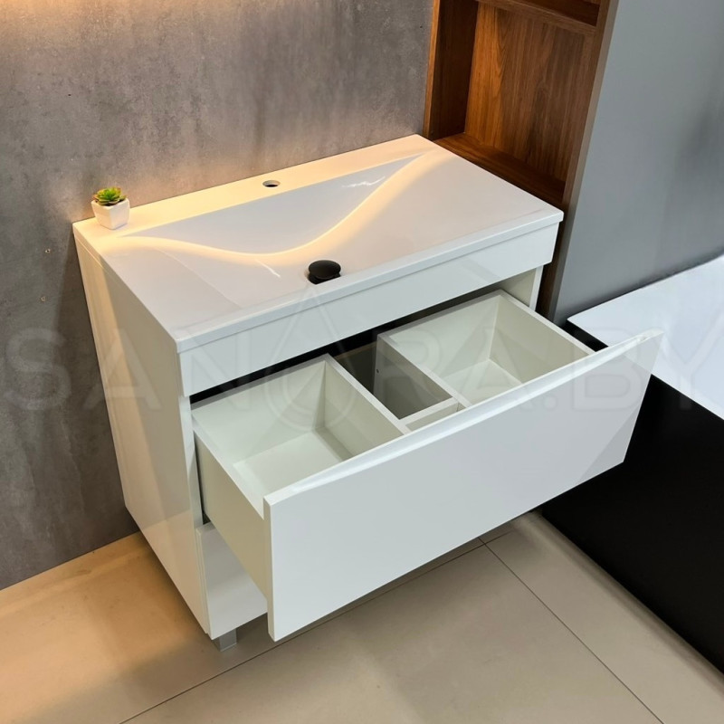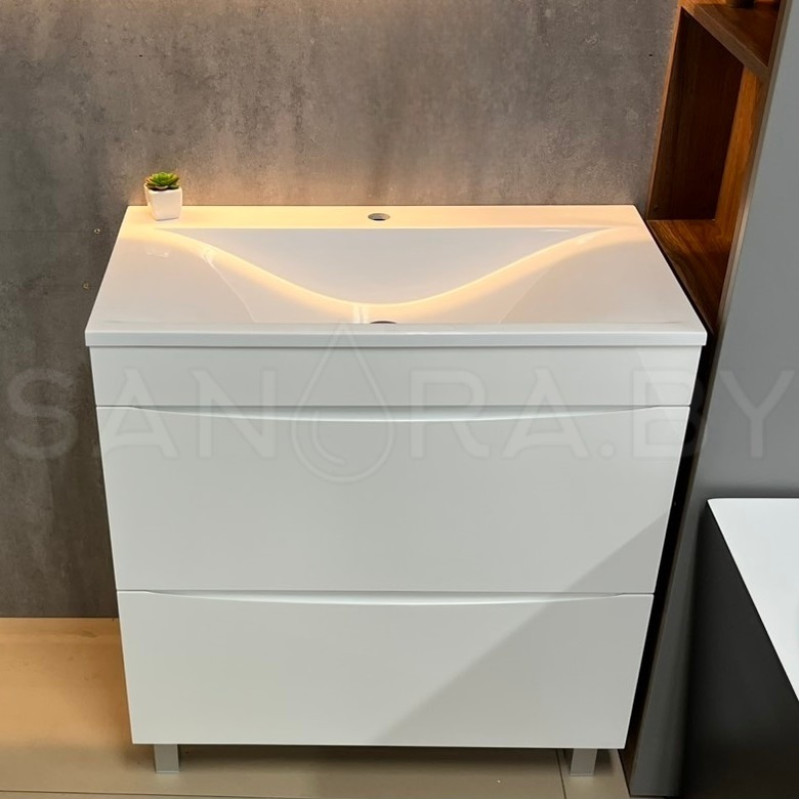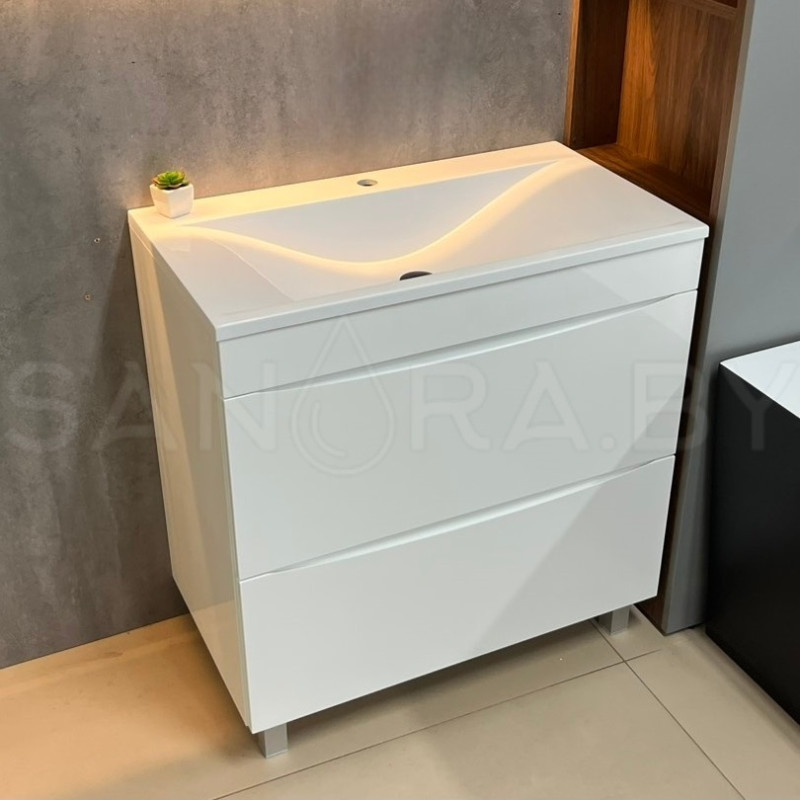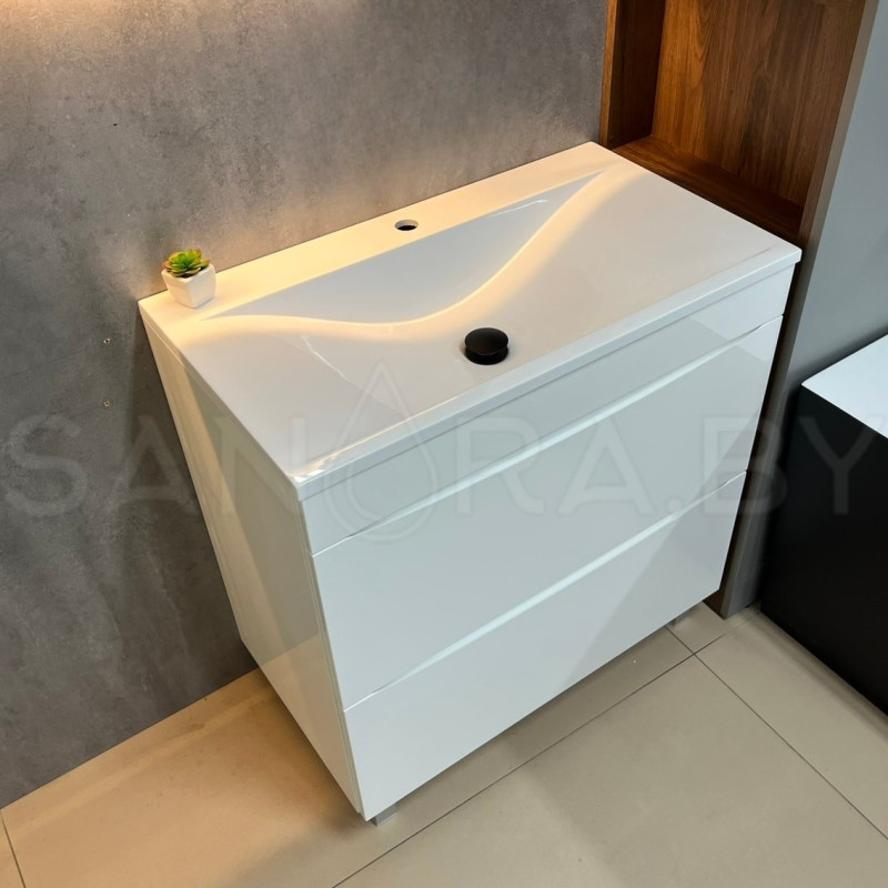 Тумба напольная Sanora Classic Белый МДФ с умывальником Фасады и боковины тумбы из крашеного МДФ EggerЯщики с доводчиками HettichУмывальник: литьевой мраморПод заказ может быть изготовлена в любом матовом цвете по Ral..