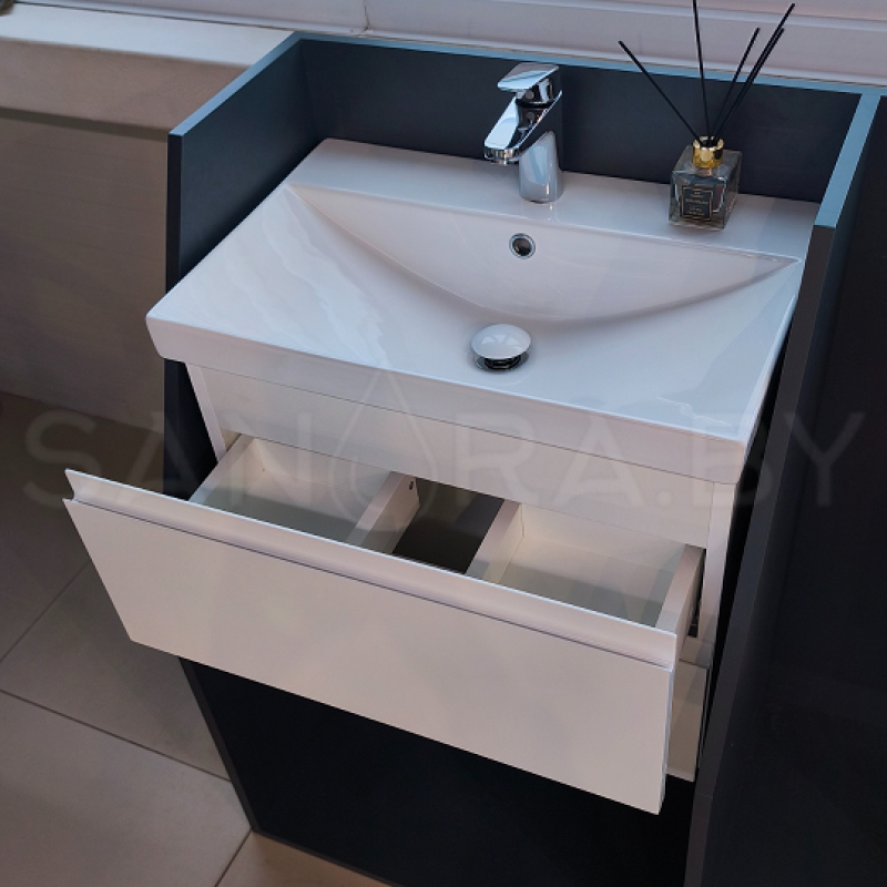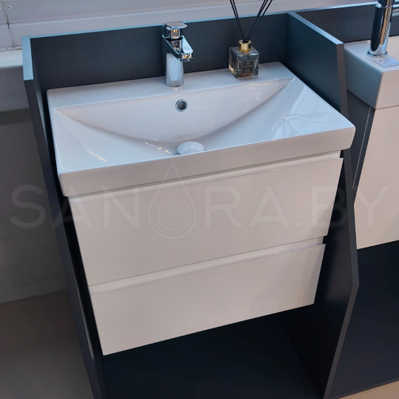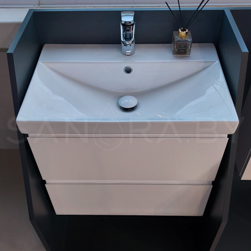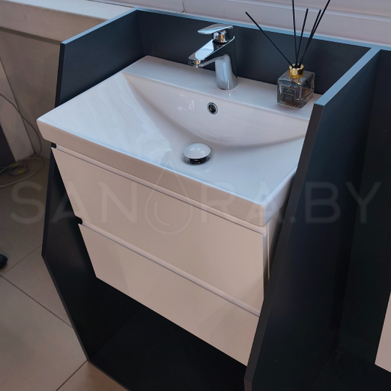 Тумба подвесная Sanora Lake Белый МДФ с керамическим умывальником в комплекте.