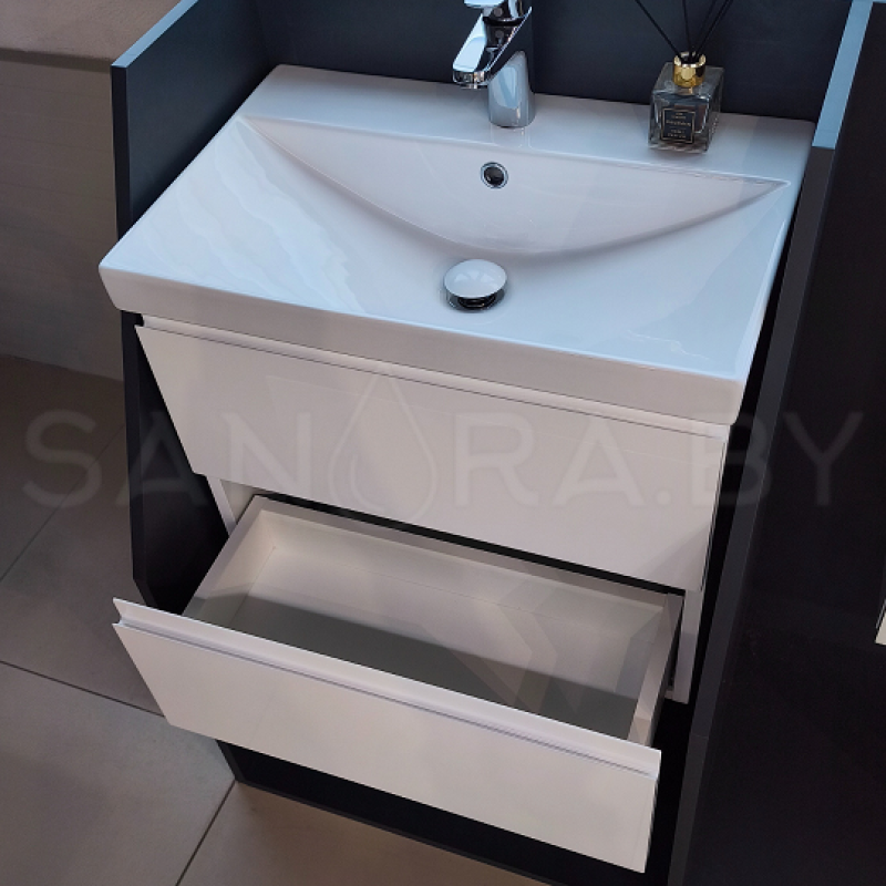 Тумба подвесная Sanora Lake с керамическим умывальником