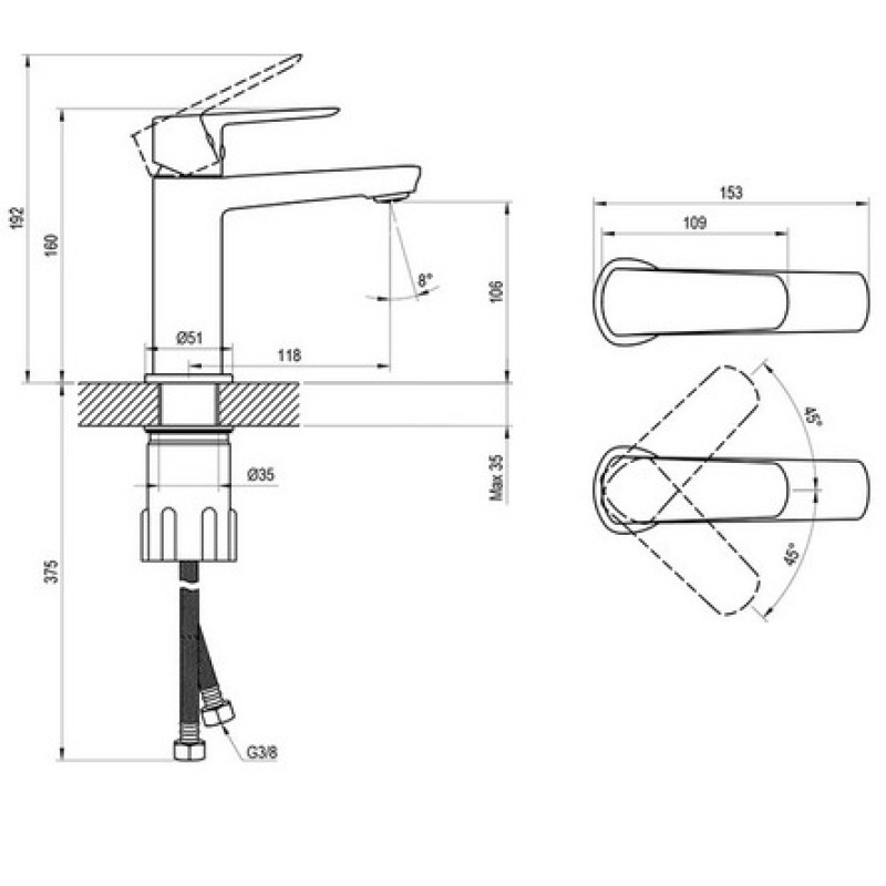 Однорычажный смеситель для умывальника, цвет - хром, керамический картридж.