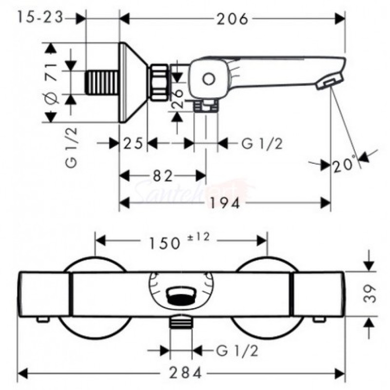 Смеситель для ванны термостатический Hansgrohe Ecostat Universal 13123000