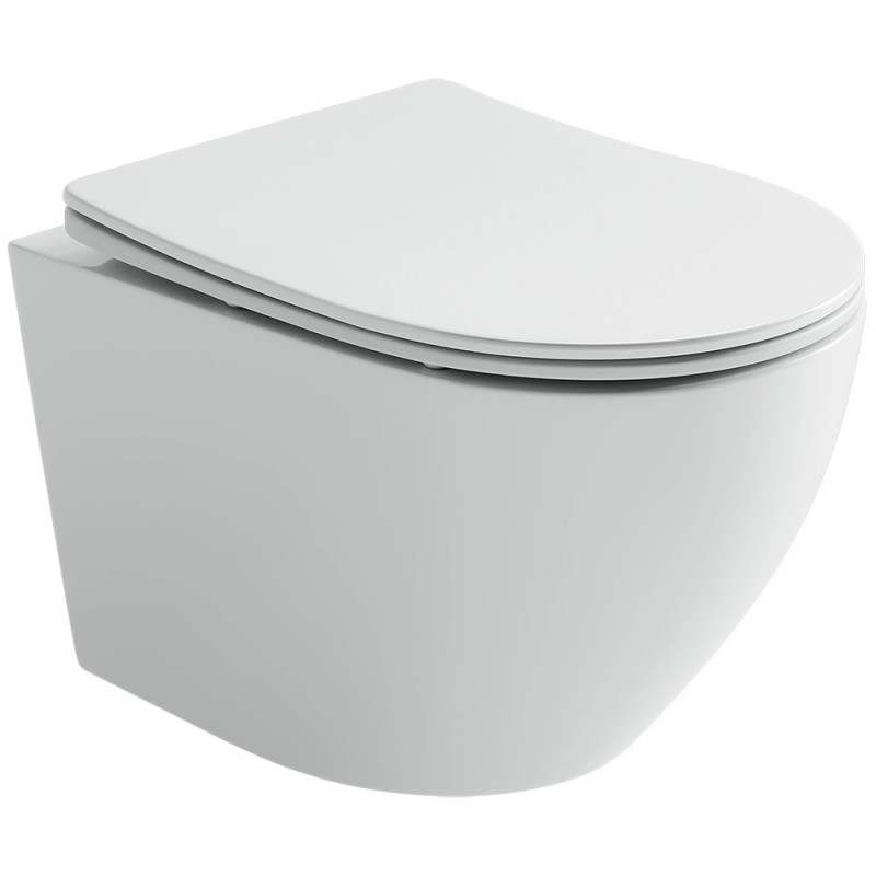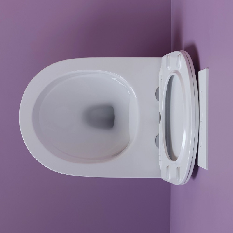 Безободковый подвесной унитаз, овальной формы, цвет - белый глянцевый, материал - фарфор, крышка и сиденье с микролифтом в комплекте.
