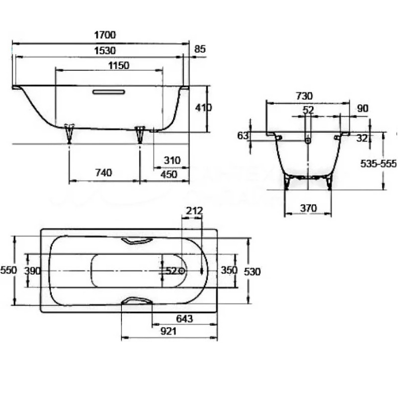 Прямоугольная стальная ванна, пристенная, полезный объем - 181 литр. Ножки в комплект не входят, приобретаются отдельно.